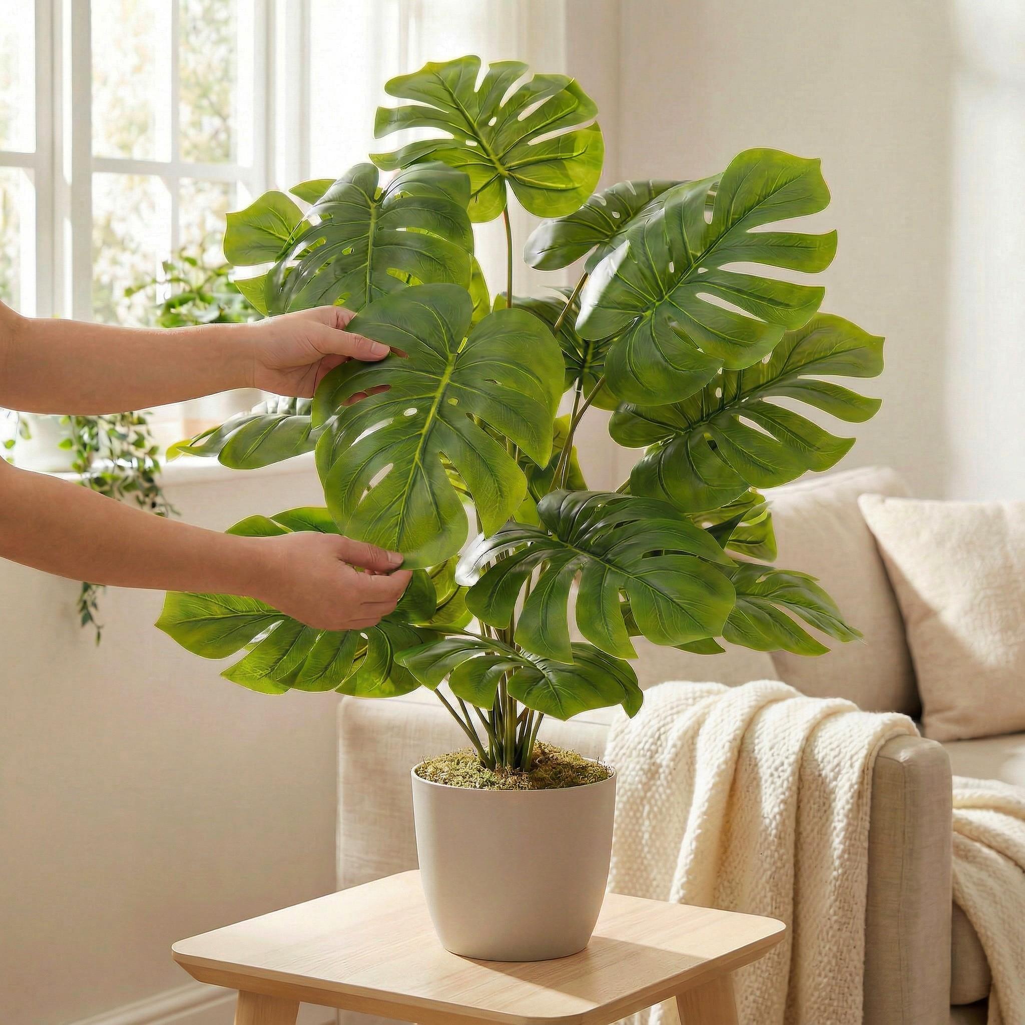Jak ułożyć liście i wystylizować sztuczną monsterę w doniczce?