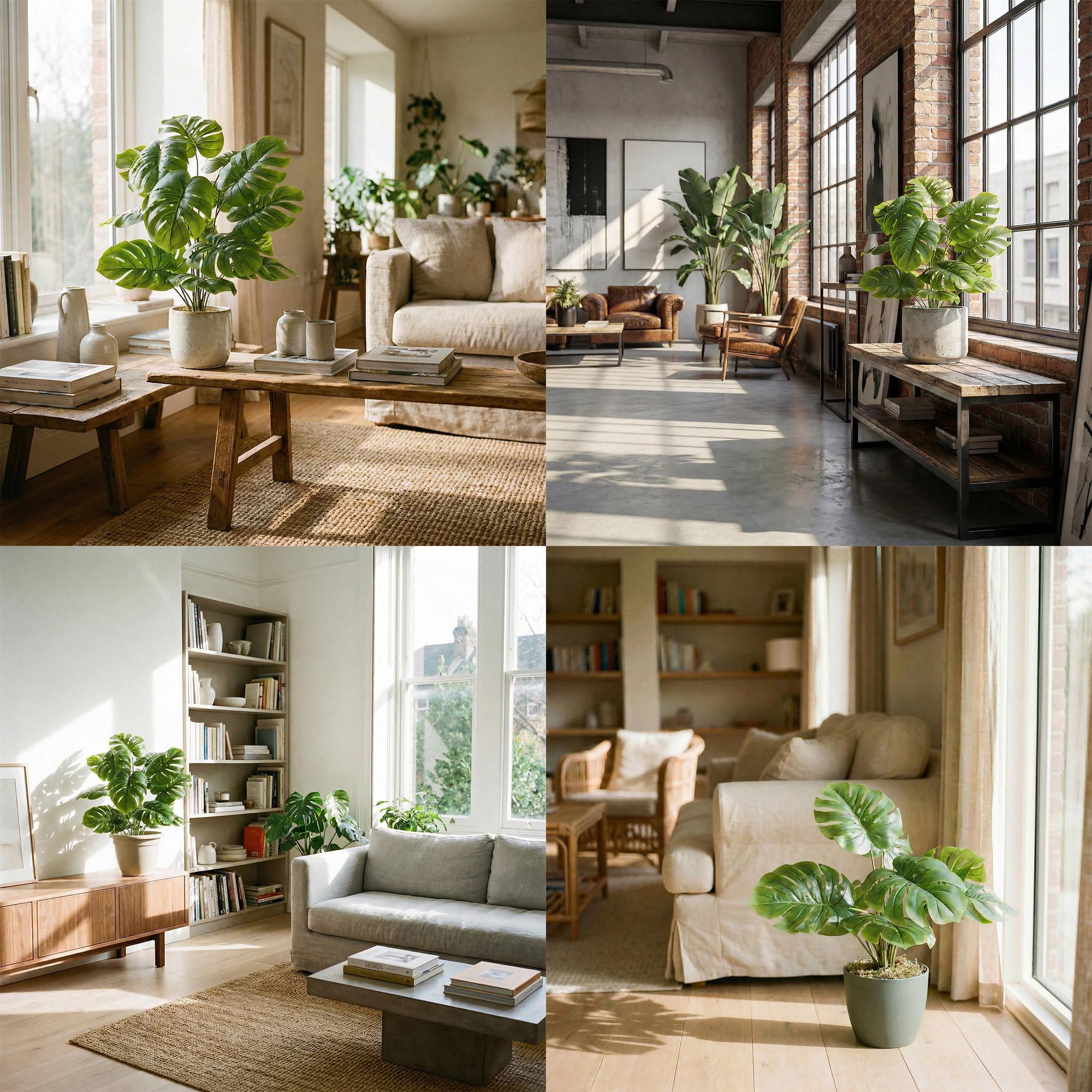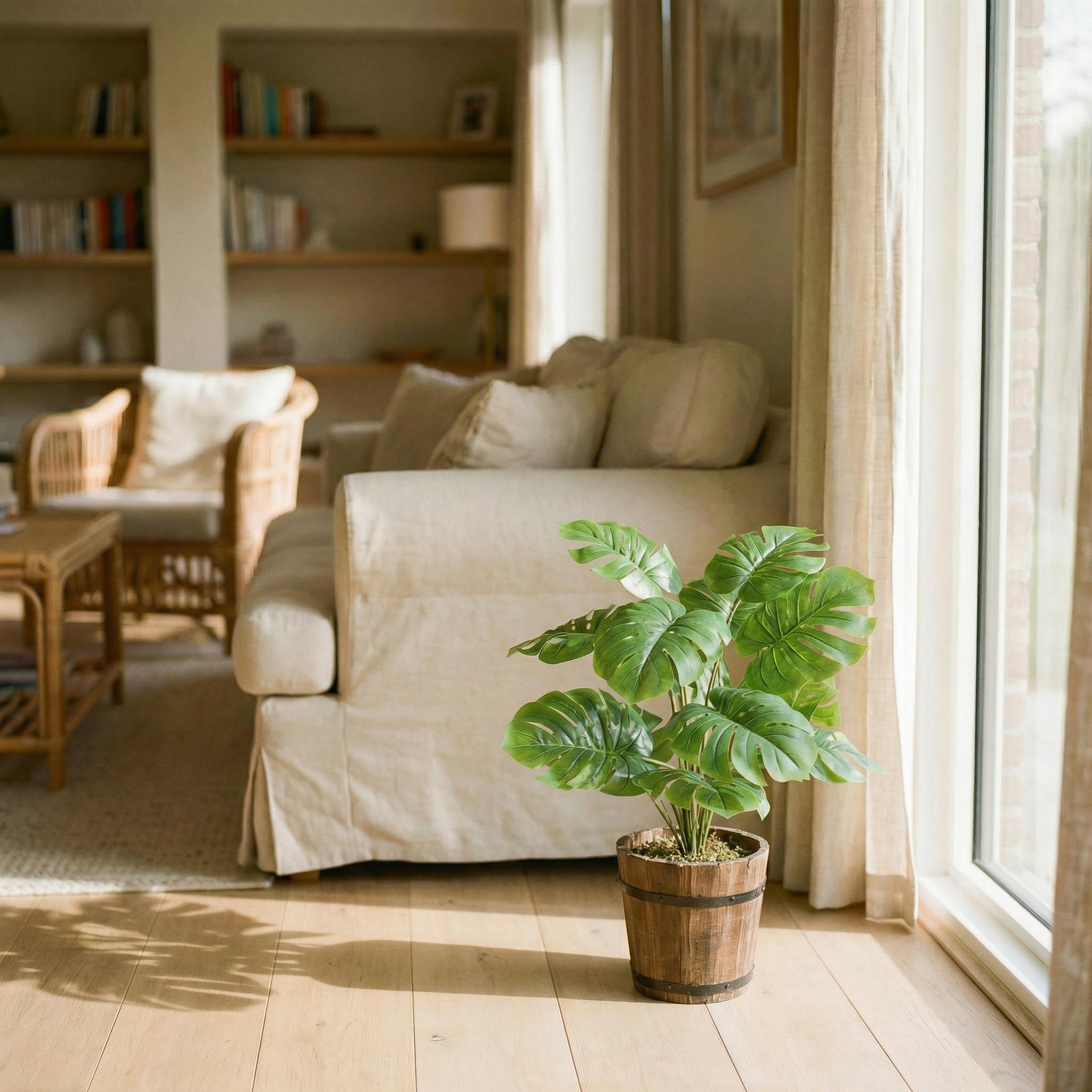 Monstera sztuczna dobrze łączy się z wnętrzami nowoczesnymi, loftowymi, boho, urban jungle i skandynawskimi. Świetnie odnajdzie się w salonie, sypialni, gabinecie, domowym biurze, recepcji, sklepie i kawiarni – podkreśli lekki, świeży charakter przestrzeni. A w nowoczesnych wnętrzach świetnie wypada w otoczeniu dekoracji ceramicznych lub betonowych.