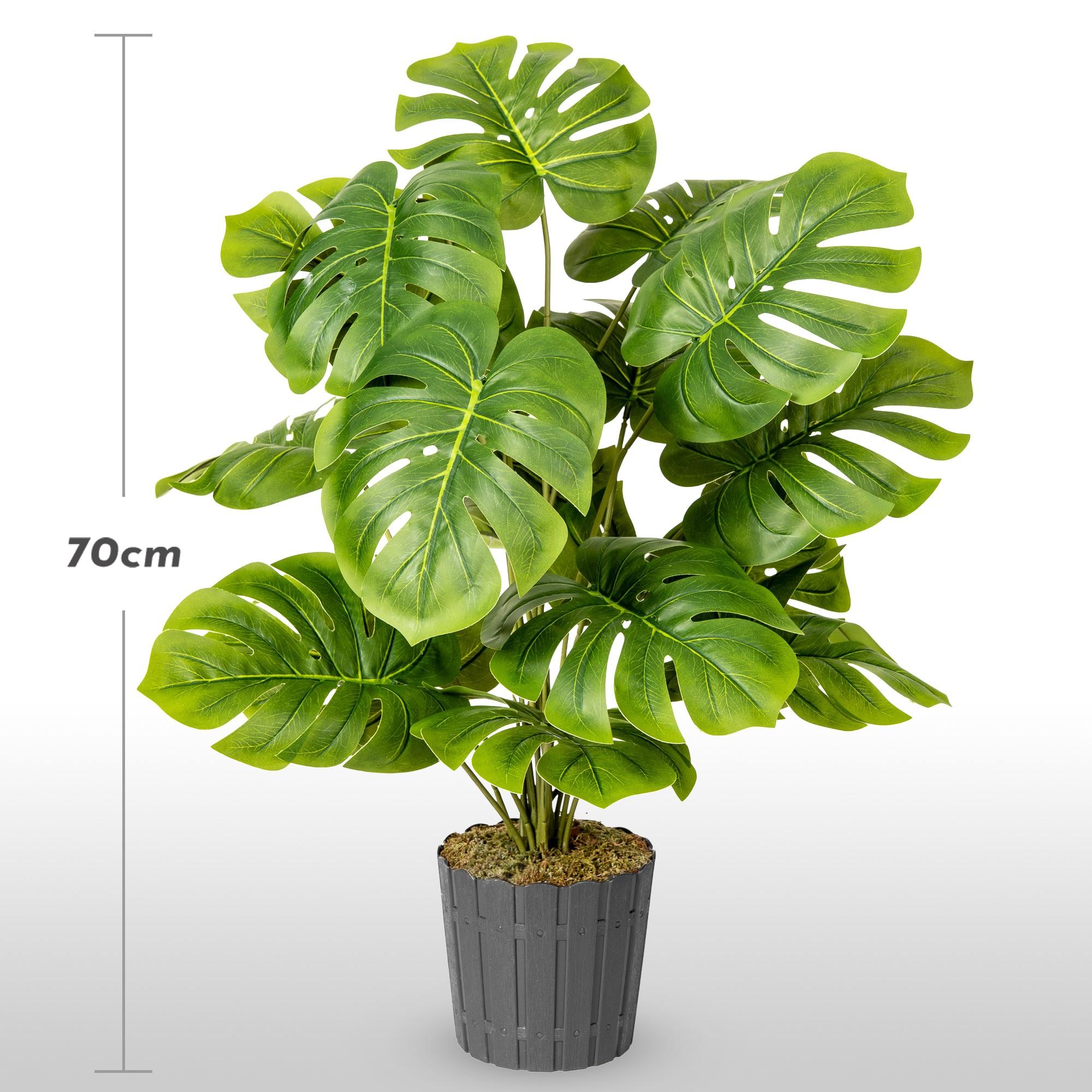 FairyTrees Sztuczna Monstera 70 cm Real Touch - 18 liści - zielona - realistyczna tekstura